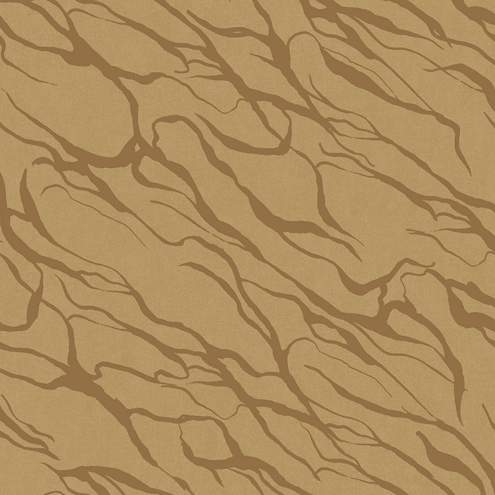 Okrová vliesová tapeta na zeď, jemně plastický zlatý žíhaný vzor.
