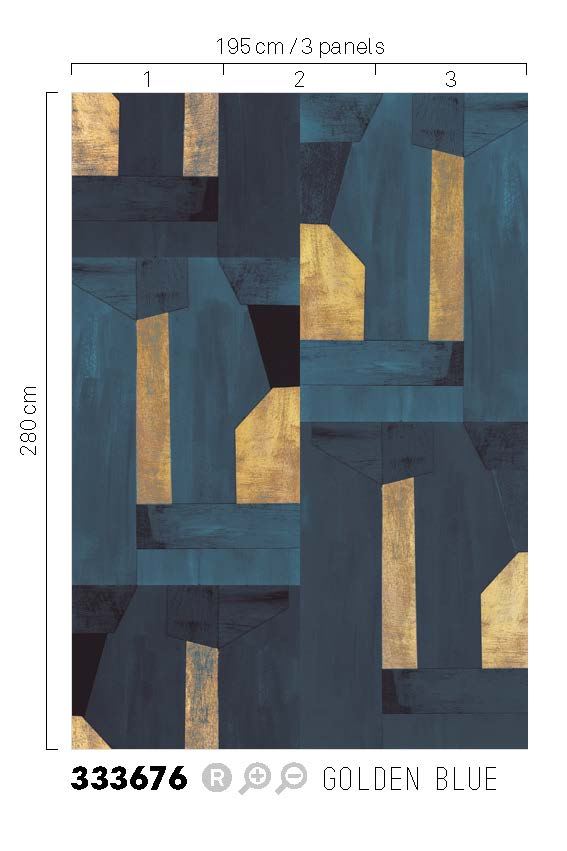 Vliesová obrazová tapeta na zeď / tapetový panel, odstíny pololesklé modré a zlaté s patinou.