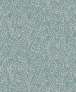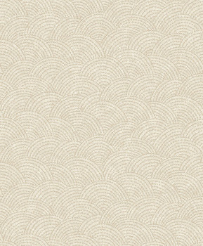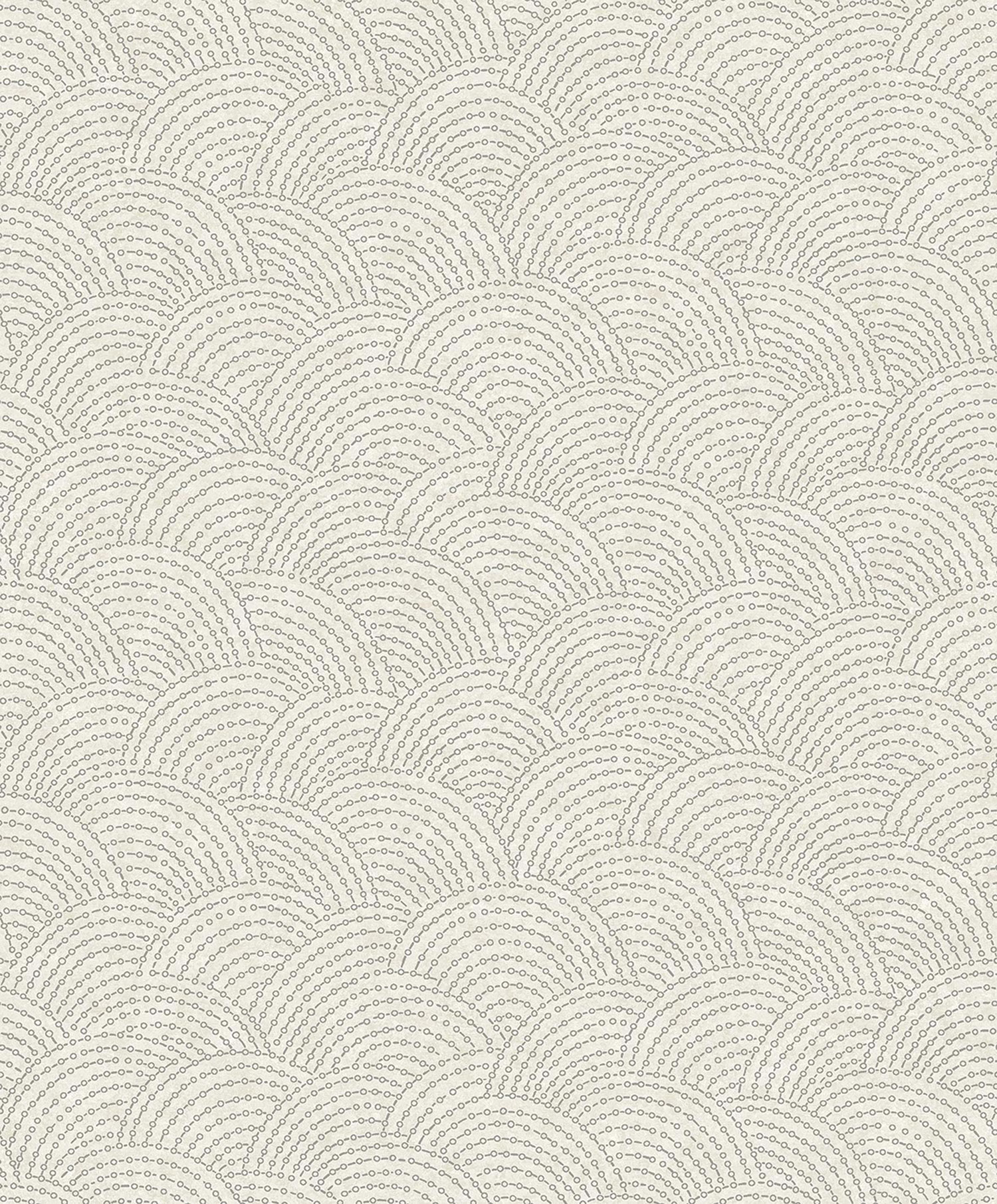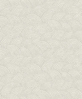 Šedá vliesová tapeta na zeď, stříbrný geometrický obloukový vzor.
