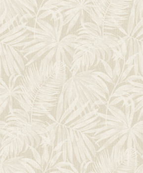 Vliesová tapeta na zeď, motivy listů, odstíny krémové, světle béžové, místy nádech do šeda, žíhaná textura.