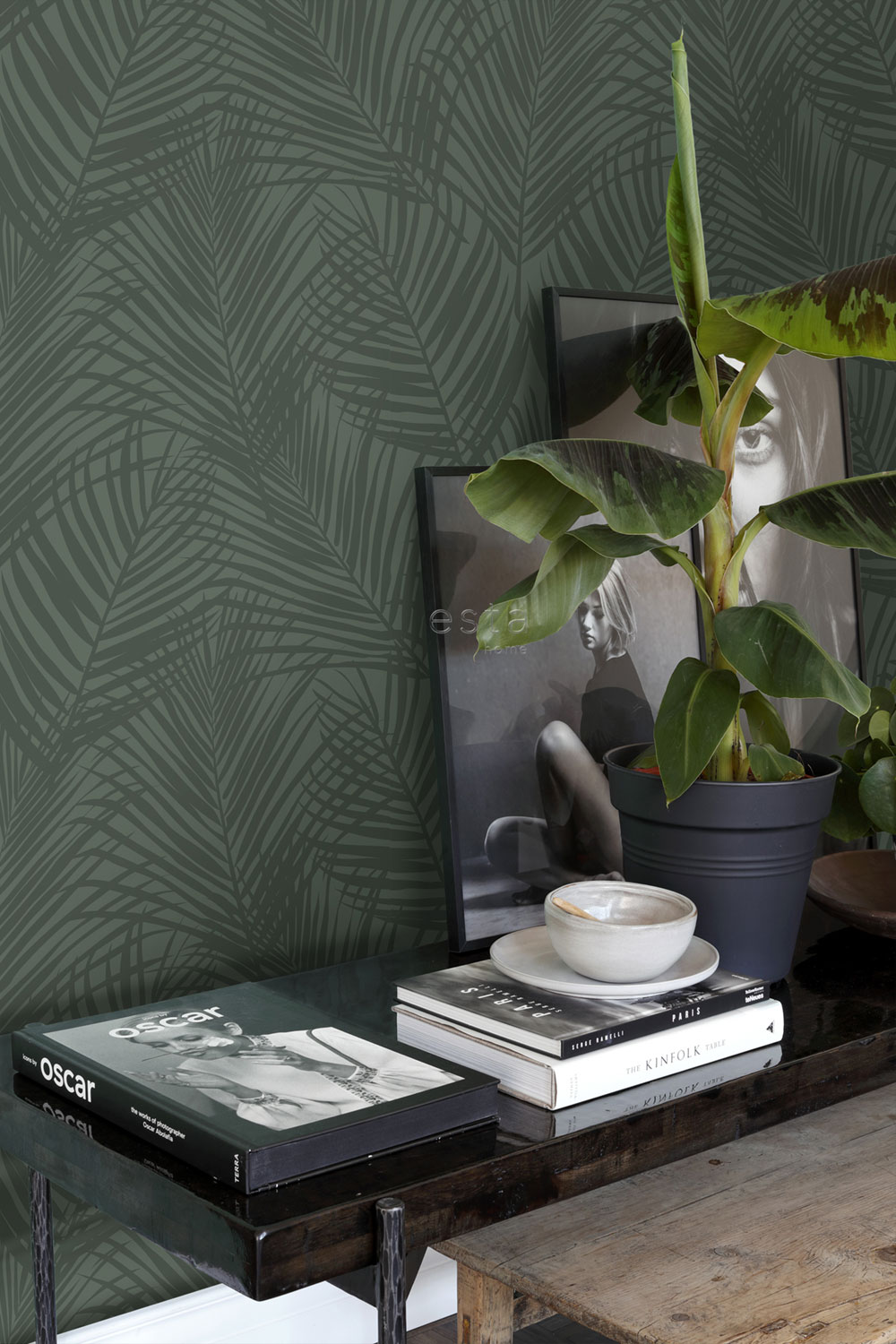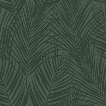 Hladká, zelená vliesová tapeta s palmovými listy.