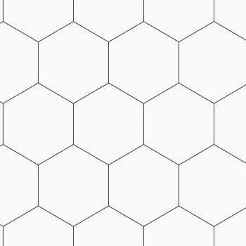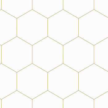Hladká, bílá, vliesová tapeta na zeď, zlaté obrysy hexagonů.