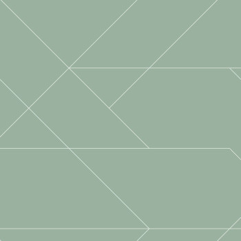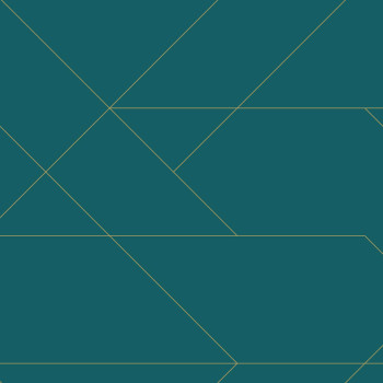 Hladká tyrkysová vliesová tapeta na zeď, zlaté linie vytváří geometrické vzory.