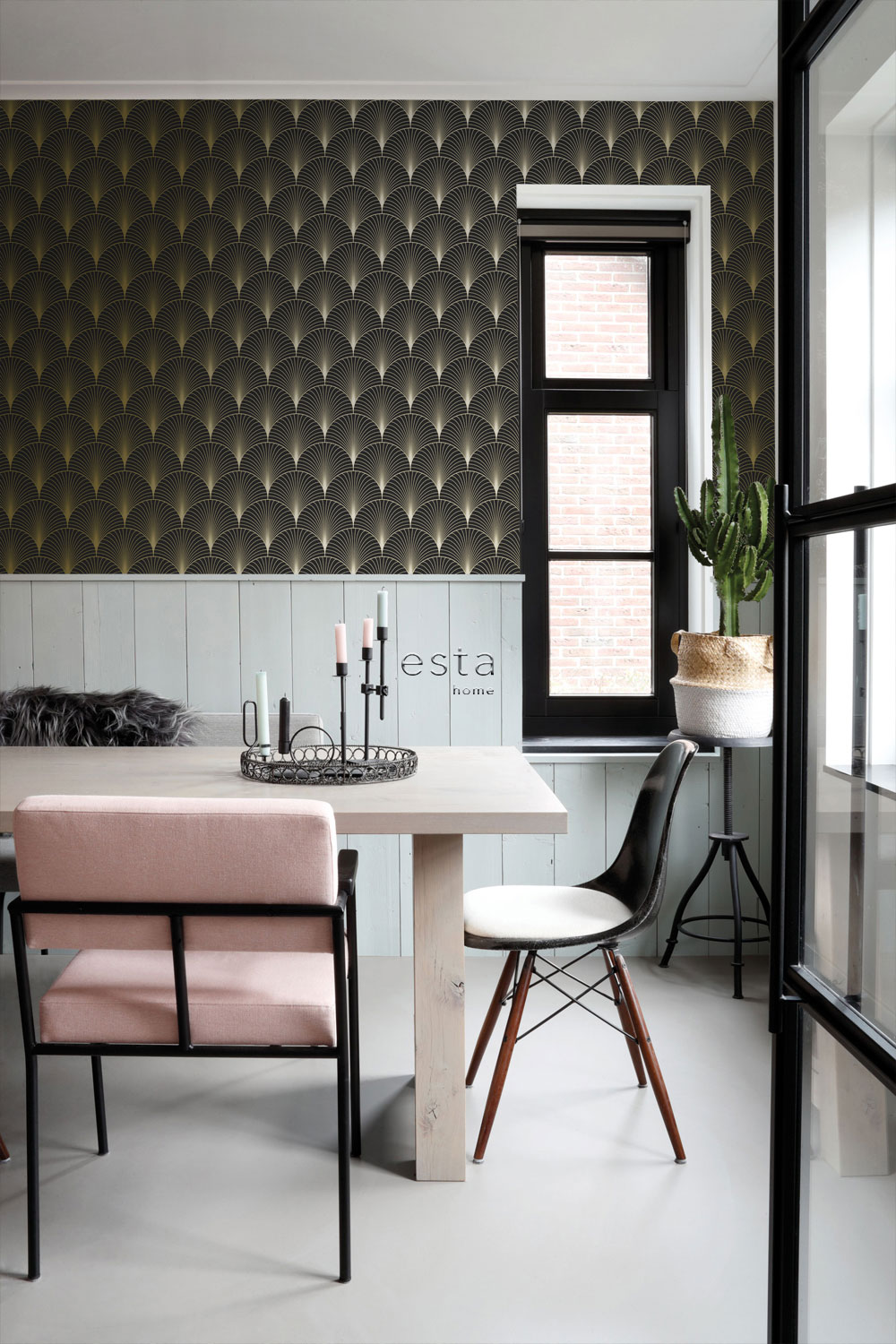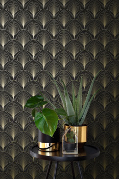 Vliesová tapeta na zeď, Art deco, černo-zlatá, 139457, Bloom, Esta Home