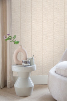 Hladká, krémová vliesová tapeta s geometrickým vzorem.