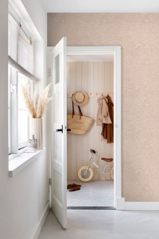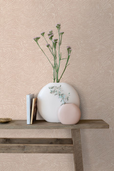 Hladká, růžová vliesová tapeta na zeď, motivy vlnek.