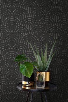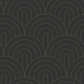 Hladká, černá vliesová tapeta na zeď, zlaté obrysy.
