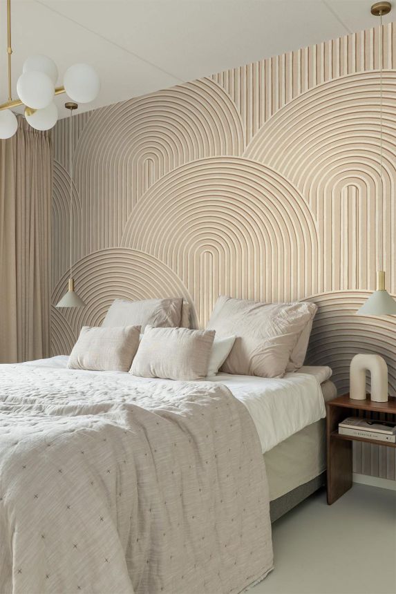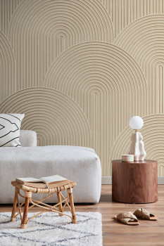 Hladká, béžová, geometrická vliesová tapeta na zeď.