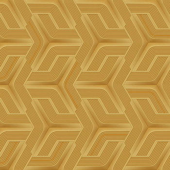 Luxusní, výrazně plastická, geometrická vliesová tapeta s vinylovým povrchem, odstíny okrově-zlaté.