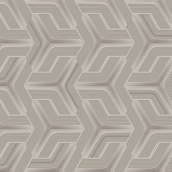 Luxusní, výrazně plastická, geometrická vliesová tapeta s vinylovým povrchem, odstíny šedo-béžové s kovovým leskem.