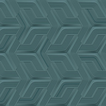 Luxusní, výrazně plastická, geometrická vliesová tapeta s vinylovým povrchem, odstíny kovově modré a stříbrné.