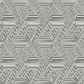 Luxusní, výrazně plastická, geometrická vliesová tapeta s vinylovým povrchem, odstíny šedé, kovové odlesky.