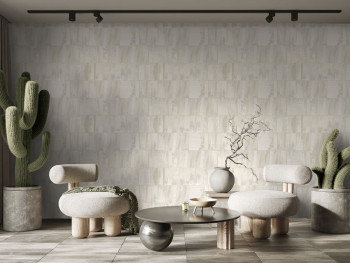 Luxusní geometrická vliesová tapeta s vinylovým povrchem, efektní střídání plastických textur, odstíny šedo-béžové.