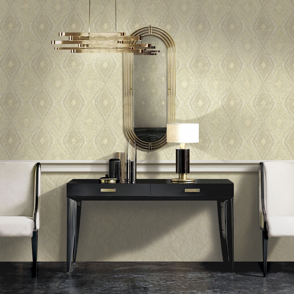 Role šíře 1,06m. Inspirováno přírodou - výrazné plastické textury, podklad v jemně metalických odstínech perlové a krémové se zlatavými odlesky, vzor okrově zlatý. Snadno zkombinujete se souvisejícími vzory.