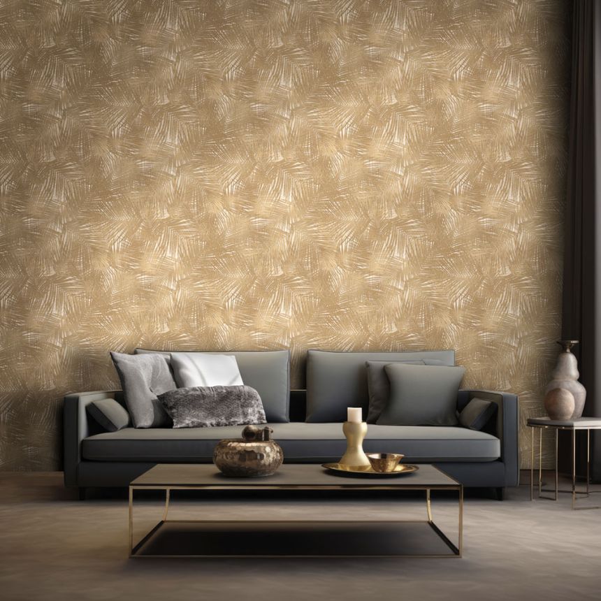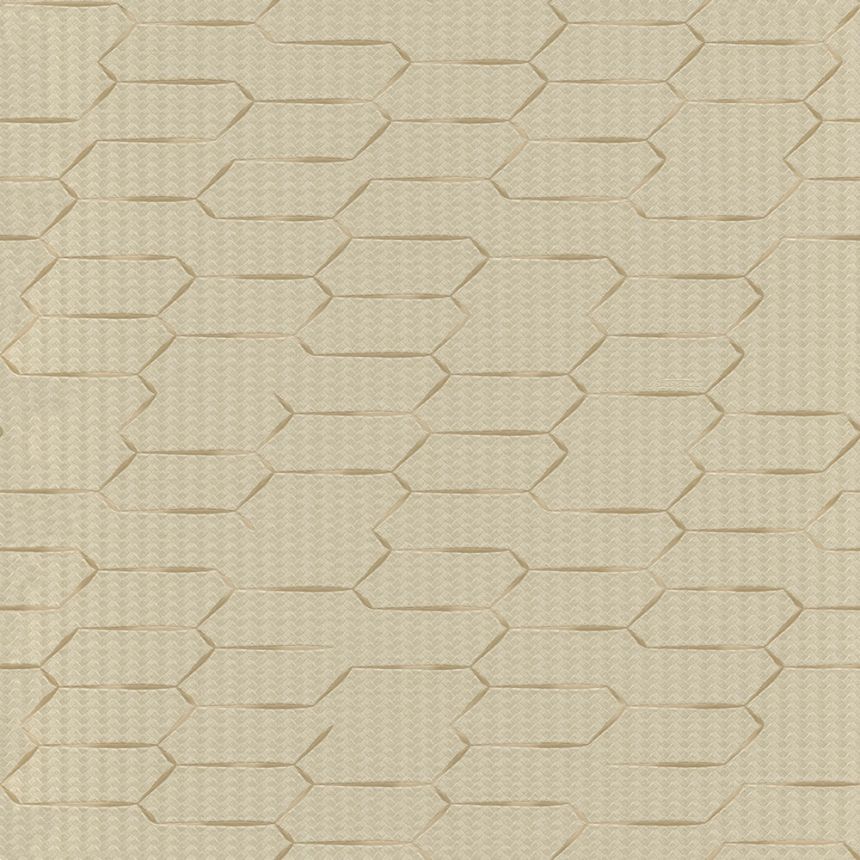 Luxusní vliesová tapeta s vinylovým povrchem, efektní proplétaný vzor s metalickým pololeskem, zlatý geometrický vzor.