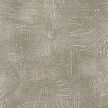 Luxusní vliesová tapeta s vinylovým povrchem, motiv šedo-béžových palmových listů na lesklém šedo-béžovém podkladu s efektním proplétáním.