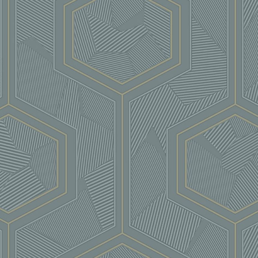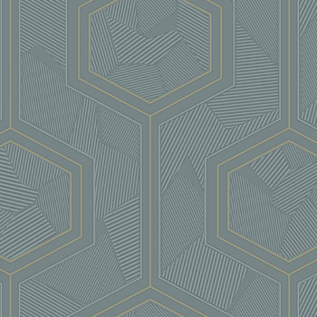 Luxusní modrá vliesová tapeta s vinylovým povrchem, plastický geometrický vzor s metalickým pololeskem.