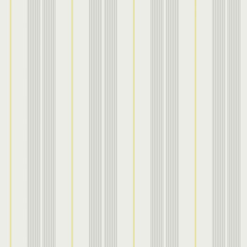 Bílá vliesová tapeta na zeď, pruhy v odstínech šedé a žluté.