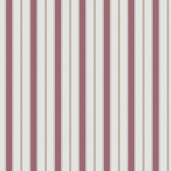 Bílá vliesová tapeta na zeď, pruhy v odstínech červené a béžové.