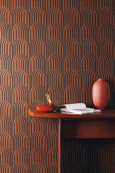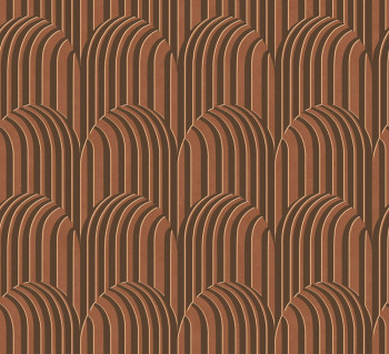 Vliesová tapeta na zeď v odstínech hnědé, jemně plastický arkádový 3D vzor s bronzovými liniemi.