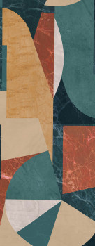 Grafická vliesová obrazová tapeta na zeď, odstíny zelené, hnědé, černé a béžové.