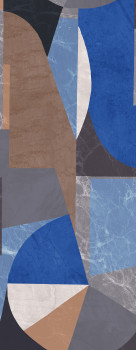 Grafická vliesová obrazová tapeta na zeď, odstíny modré, šedé, hnědé, černé a béžové.