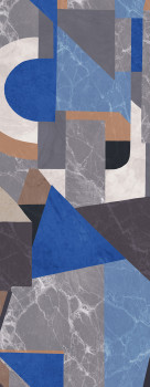 Grafická vliesová obrazová tapeta na zeď, odstíny modré, šedé, hnědé, černé a béžové.