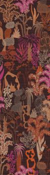 Vliesová tapeta na zeď, hrubá látková textura, motivy rostlin, odstíny hnědé, růžové, oranžové.