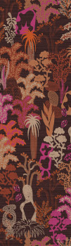 Vliesová tapeta na zeď, hrubá látková textura, motivy rostlin, odstíny hnědé, růžové, oranžové.