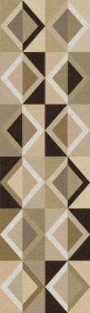 Geometrická vliesová tapeta na zeď, hrubá látková textura, odstíny béžové, hnědé, černé.