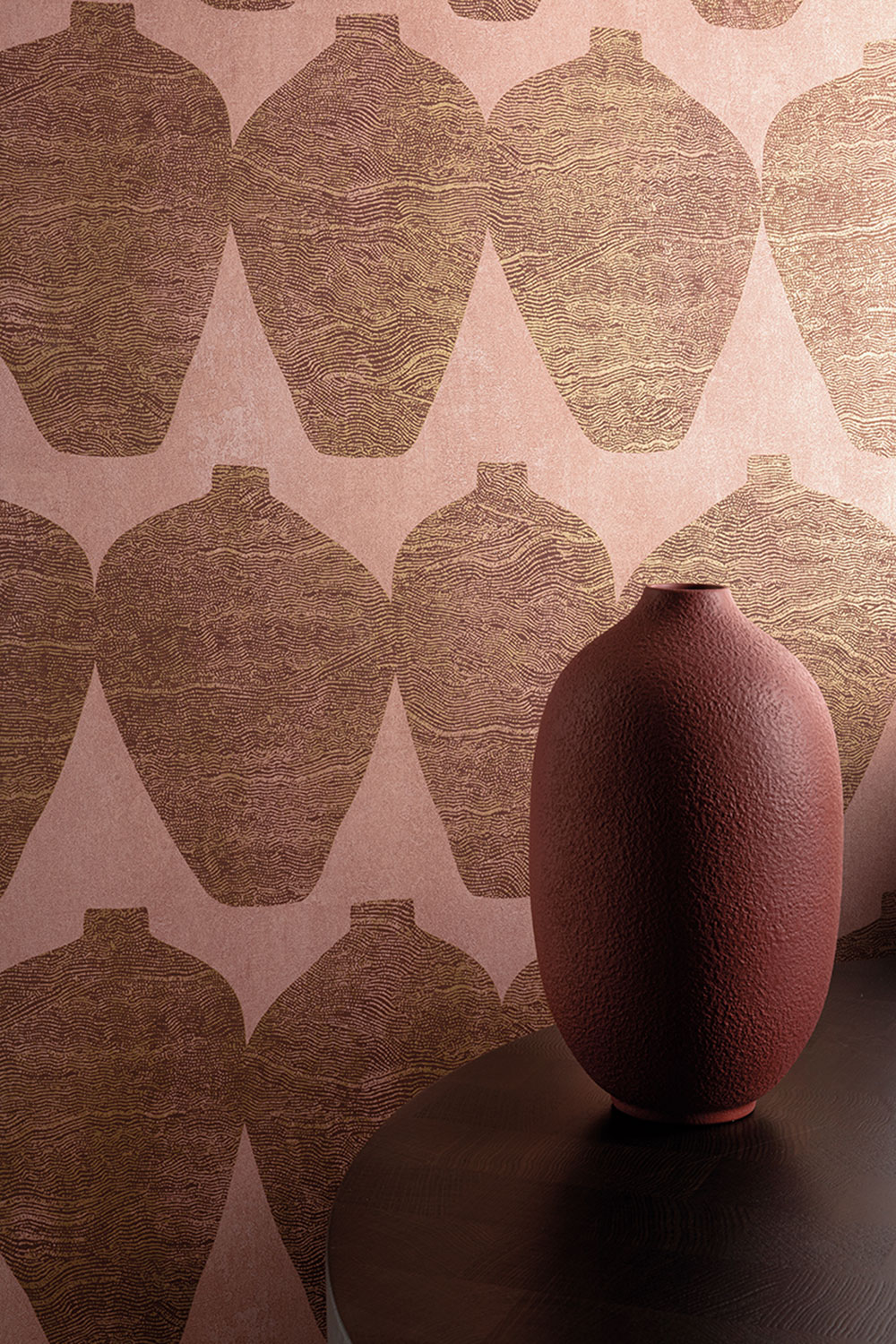 Kolekce Terra"čerpá inspiraci z hlubokého duchovního spojení starověkých kmenů se zemí. Toto propojení mezi lidmi a přírodou je doslova hmatatelné, když se surová hlína promění v mistrovské dílo. Výsledek tohoto řemeslného procesu odráží brutální, nespoutanou podstatu naší země a tvoří základ designů v kolekci vliesových tapet Terra. Tvarované a modelované formy vypadají, jako by se zrodily přímo ze země – autentické, neopracované a bez formální dokonalosti. Terra je poctou naší zemi.