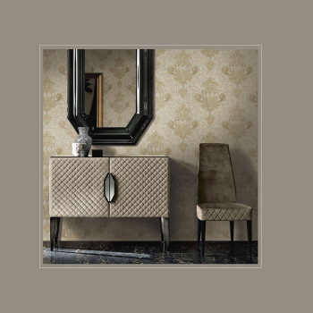 Šíře role 1,06 m. Luxusní vliesové tapety s vinylovým povrchem inspirované krásou italských historických paláců - zámecký ornamentální vzor, jemně plastická textura. Odstíny na tapetě - podklad matný krémový s okrově zlatým mramorováním, vzor pololesk stříbrná, zlatá patina. Snadno zkombinujete se souvisejícími tapetami.