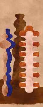 Vliesová obrazová tapeta na zeď, podloubí v odstínech hnědé, modré, terakota a béžové.
