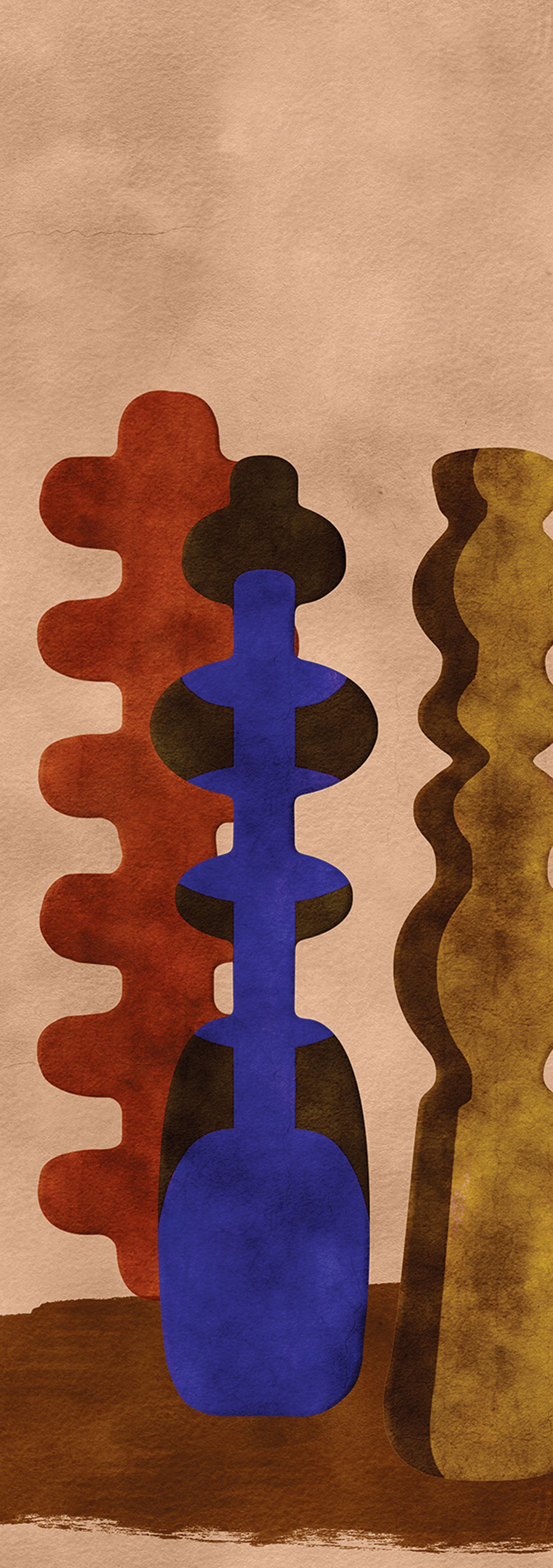 Kolekce Terra"čerpá inspiraci z hlubokého duchovního spojení starověkých kmenů se zemí. Toto propojení mezi lidmi a přírodou je doslova hmatatelné, když se surová hlína promění v mistrovské dílo. Výsledek tohoto řemeslného procesu odráží brutální, nespoutanou podstatu naší země a tvoří základ designů v kolekci vliesových tapet Terra. Tvarované a modelované formy vypadají, jako by se zrodily přímo ze země – autentické, neopracované a bez formální dokonalosti. Terra je poctou naší zemi.