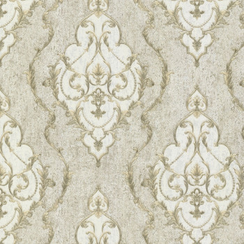 Šíře role 1,06 m. Luxusní vliesové tapety s vinylovým povrchem inspirované krásou italských historických paláců - bohatý zámecký vzor, plastická textura v metalických odstínech šedo-stříbrné a zlaté. Snadno zkombinujete se souvisejícími tapetami.