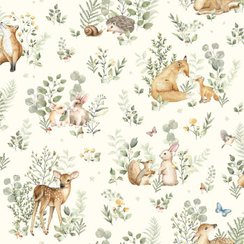 Tmavě zelená vliesová tapeta na zeď, lesní zvířátka.