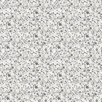 Bílá vliesová tapeta na zeď, květinový vzor v odstínech šedé.