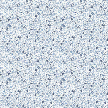 Bílá vliesová tapeta na zeď, květinový vzor v odstínech modré.
