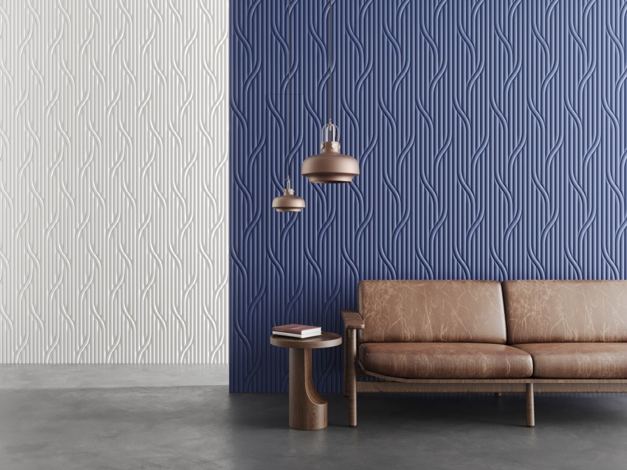 Vroubkovaný nástěnný panel je skvělý pro televizní místnosti a mediální místnosti, protože má vlastnosti akustického nástěnného panelu αw = 0,15 a pohlcuje až 25% hovorového zvuku + tepelné vlastnosti R = 0,55 m²K/W, díky čemuž je tento panel perfektní volbou pro místnosti, kde chcete stabilizovat teplotu. Návrhář Orio Tonini. Plocha jednoho panelu je 0,5 m².