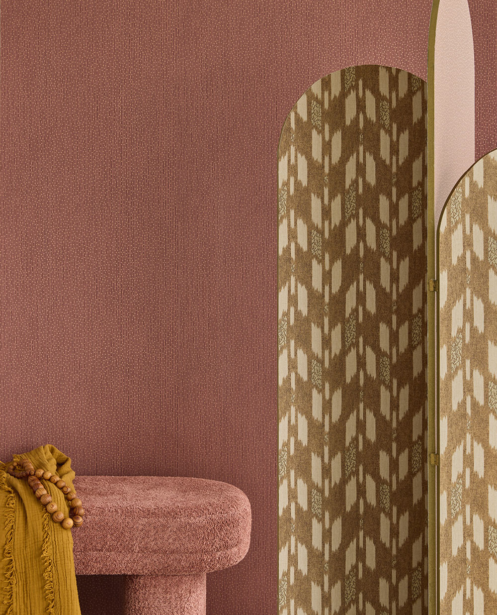 Se Solange můžete zaplnit své stěny radostí a barevností květinových vzorů inspirovaných tradiční africkou batikou. Nebo si zamilujete moderní nomádský styl díky vzorům inspirovaným ikatem. A co třeba cikcakový design s jemnými kovovými akcenty, který vzdává hold nádherným tkaninám Kuba? Tyto unikátní tapety na zeď skvěle doplní paleta barev evokující přirozené odstíny rafie a batikových koberců – od živých tónů až po tlumené a zemitější odstíny.