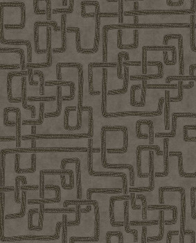 Jemně plastická vliesová tapeta na zeď, vzhled tkaniny, odstíny tmavé hnědo-šedé a černé, ve vzoru s metalickými akcenty.