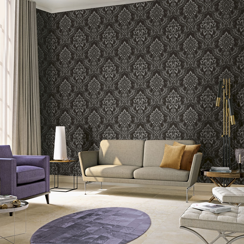 Vneste do interiéru styl a eleganci. Vliesová tapeta s vinylovým povrchem - jemně plastický zámecký vzor, barvy na tapetě černá a šedostříbrný prolis.