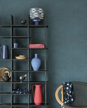 Vliesová tapeta na zeď, imitace hrubší látky, odstíny tmavě modré.