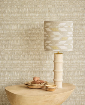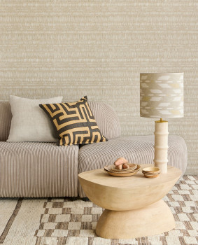 Vliesová tapeta na zeď, batikový pruhovaný vzor v odstínech béžové a šedo-béžové / pískové.
