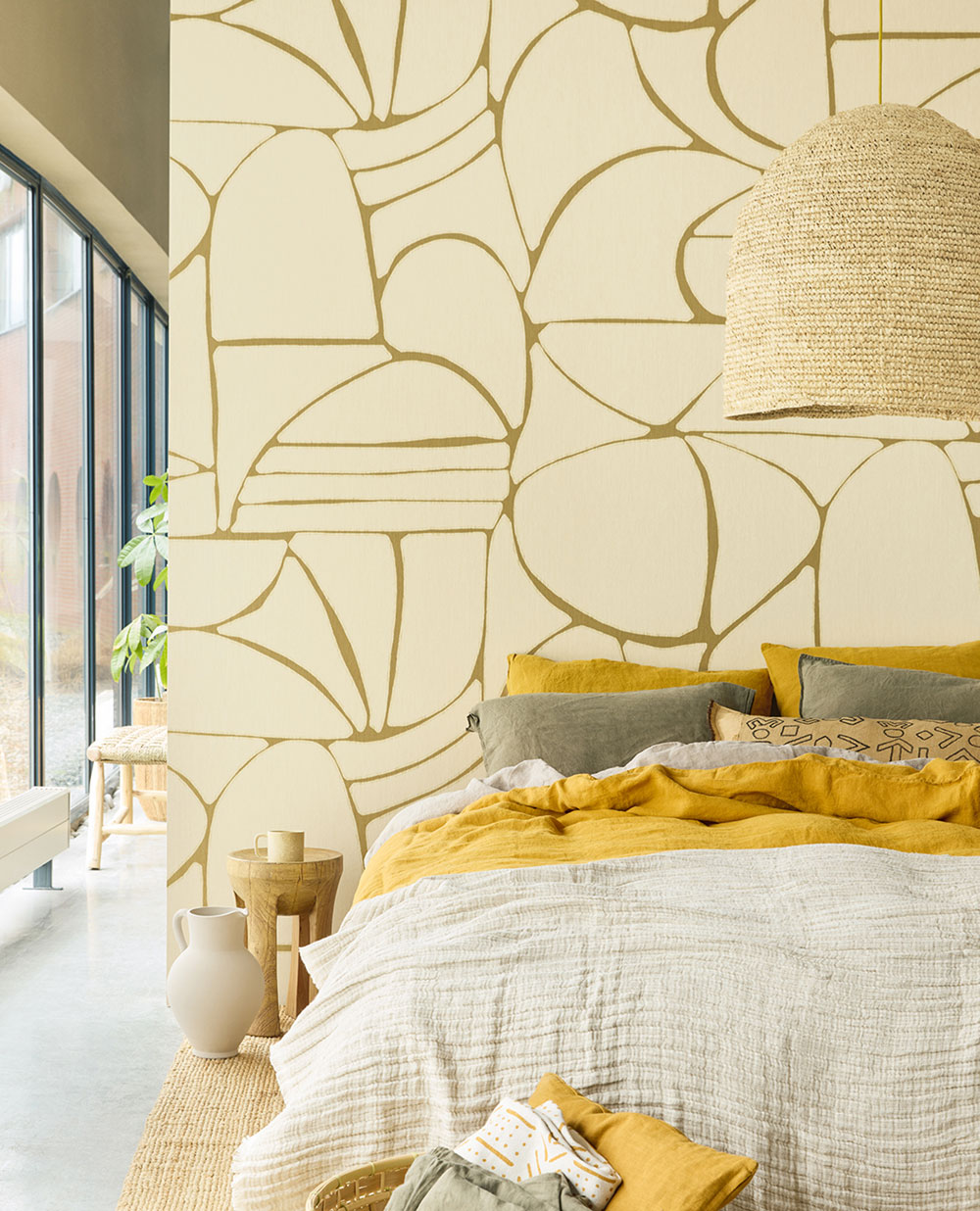 Se Solange můžete zaplnit své stěny radostí a barevností květinových vzorů inspirovaných tradiční africkou batikou. Nebo si zamilujete moderní nomádský styl díky vzorům inspirovaným ikatem. A co třeba cikcakový design s jemnými kovovými akcenty, který vzdává hold nádherným tkaninám Kuba? Tyto unikátní tapety na zeď skvěle doplní paleta barev evokující přirozené odstíny rafie a batikových koberců – od živých tónů až po tlumené a zemitější odstíny.