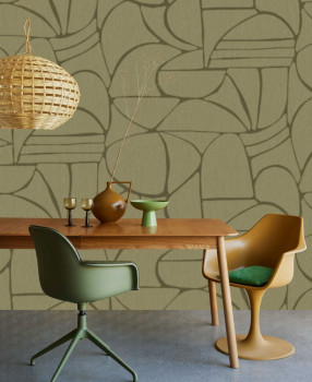 Zelená vliesová obrazová tapeta na zeď, etno vzor.