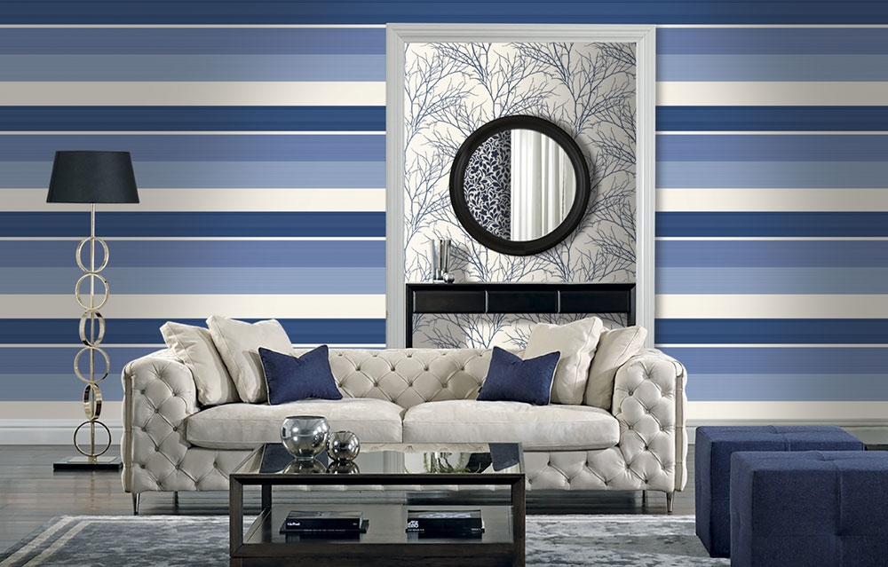 Vliesová tapeta s vinylovým povrchem - efektní pruhy v odstínech bílé a modré s jemným metalickým leskem a jemně plastickou texturou. Pruhy na tapetě jsou tištěny vertikálně, lepení horizontálně nabízí další alternativu dekorativního efektu. Snadno zkombinujete se souvisejícími tapetami.