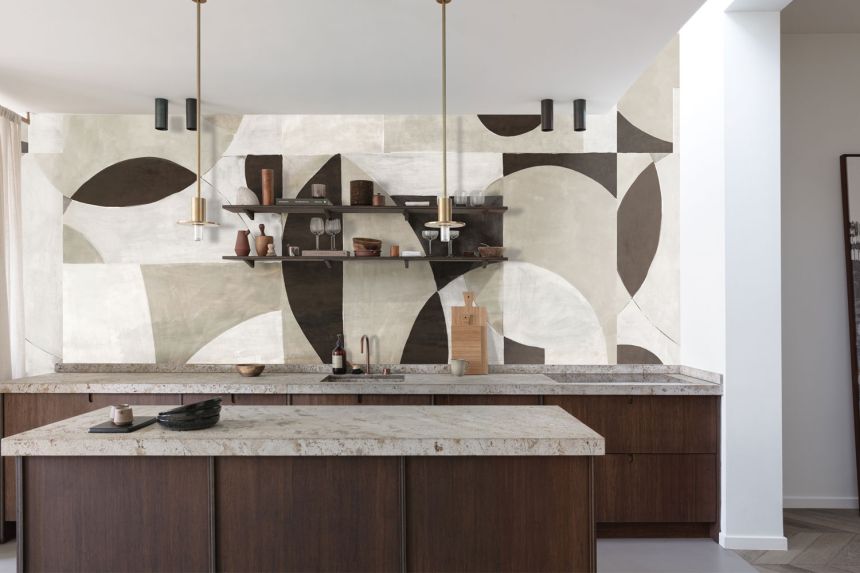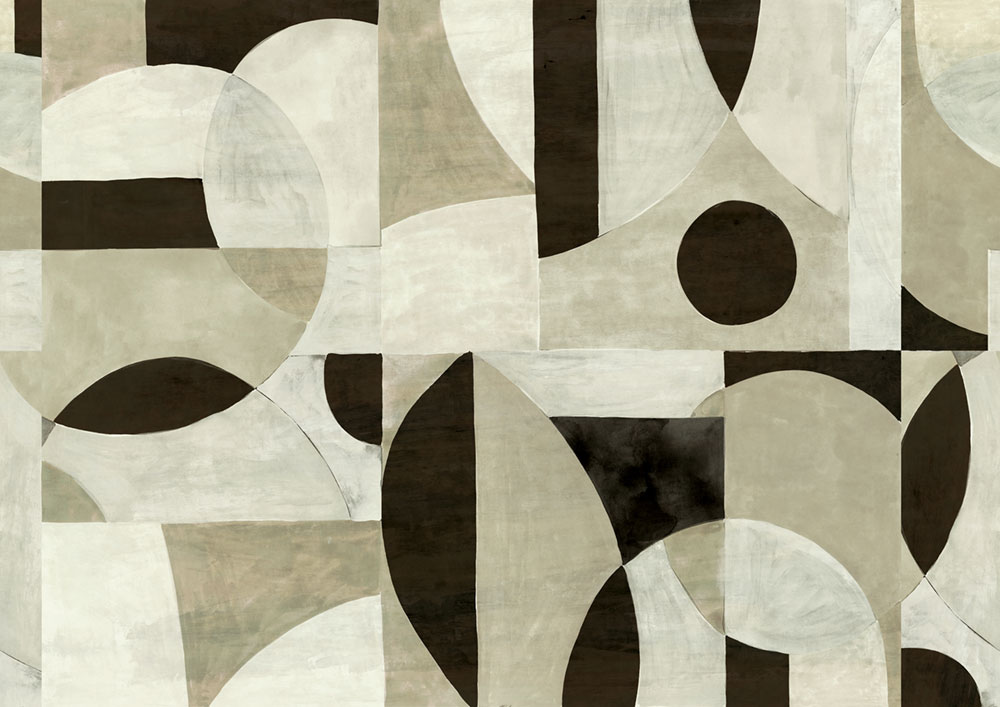 Vliesová obrazová tapeta na zeď, geometrický vzor, odstíny šedo-béžové a černé.