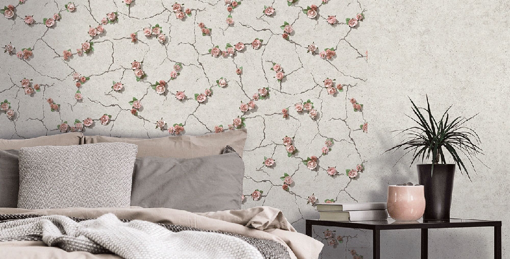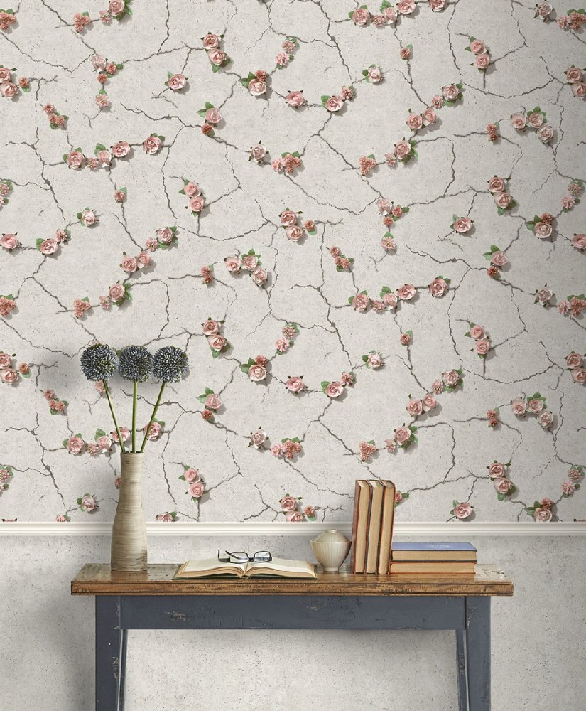 Efektní design růží prorůstajících z betonové stěny. Textura jemně strukturovaný omyvatelný měkký vinyl. Tapeta vhodná do chodby, ložnice, ale i do obývacího pokoje. Kombinujte se souvisejícími vzory.