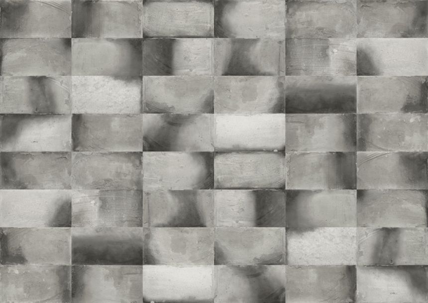 Vliesová obrazová tapeta na zeď, imitace obkladu v ostínech šedé.